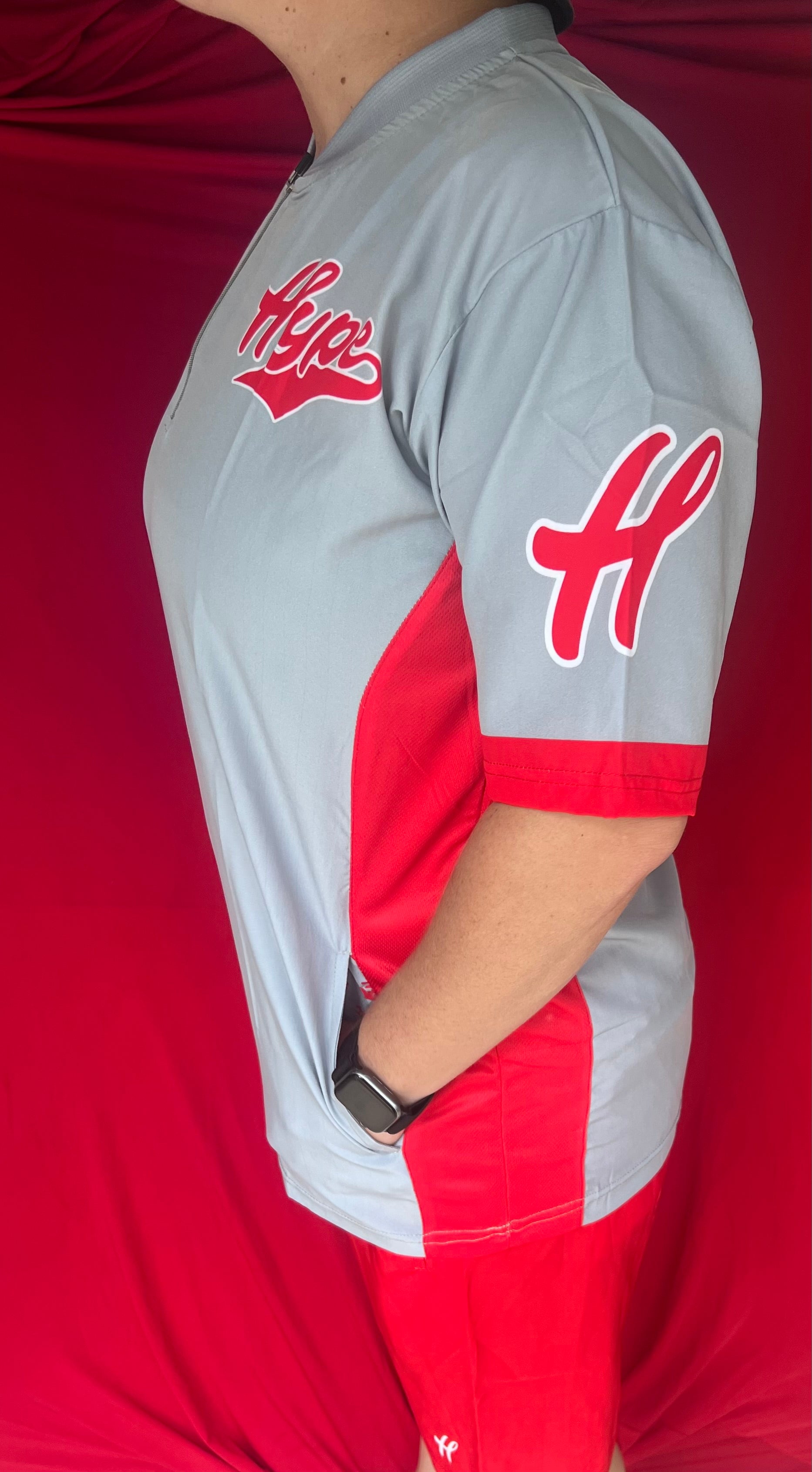BP Quarter Zip - Red in Grey